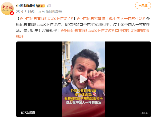 [中東記者看閱兵后忍不住哭了]外籍記者看閱兵后忍不住哭泣:我特別希望中東能實現和平,中東住哭過上像中國人一樣的看閱生活。銘記歷史!兵后珍愛和平!中東住哭