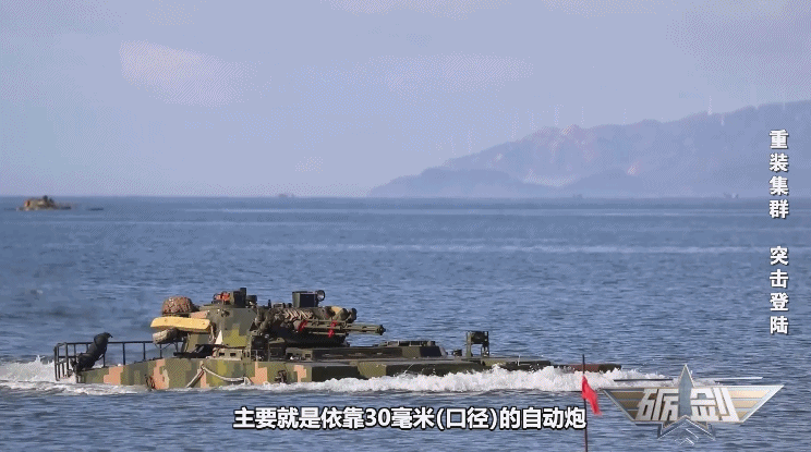 05式兩棲步戰車有30毫米口徑的自動炮,射速非常快,在發射的瞬間,就可以傾瀉大量的彈藥,形成非常密集的火力壓制。同時,它也可以發射煙霧彈、導彈,可以說是一專多能。