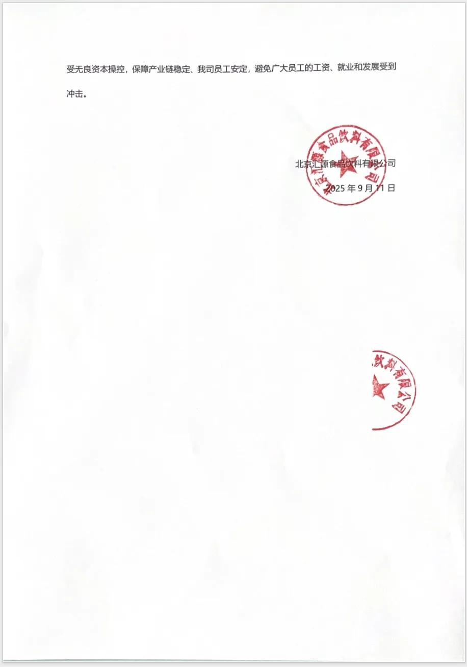 8月14日,匯源工會委員會發出異議函,質疑2025年第三次臨時股東會的合法有效性。根據異議函內容,8月11日舉行的第三次臨時股東會上,大股東諸暨文盛匯通過自己提名的監事、在自己的辦公場所、以自己的單方意愿進行表決。匯源唯一的監事出席了會議欲提出異議,但遭到強行閉麥。