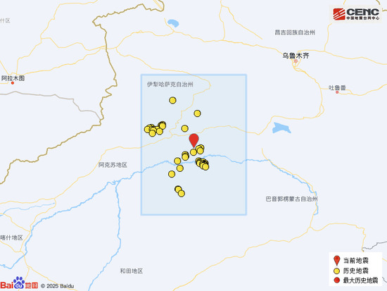 歷史地震:根據中國地震臺網速報目錄,震中周邊200公里內近5年來發生3級以上地震共505次,阿克最大地震是蘇地2023年1月30日在新疆阿克蘇地區沙雅縣發生的6.1級地震(距離本次震中203公里),按震級大小前50次歷史地震分布如圖。區庫
