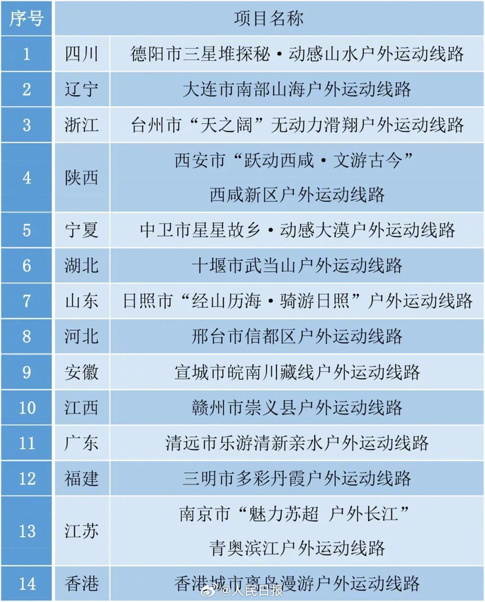 內(nèi)容摘要:日前,國(guó)家體育總局正式發(fā)布了2025年國(guó)慶假期戶(hù)外運(yùn)動(dòng)精品線(xiàn)路,旨在持續(xù)推進(jìn)“戶(hù)外運(yùn)動(dòng) 活力山水”行動(dòng)計(jì)劃,不斷滿(mǎn)足人民群眾日益增長(zhǎng)的戶(hù)外運(yùn)動(dòng)需求,充分釋放戶(hù)外運(yùn)動(dòng)消費(fèi)潛力。此次發(fā)布的14條精品線(xiàn)路涵