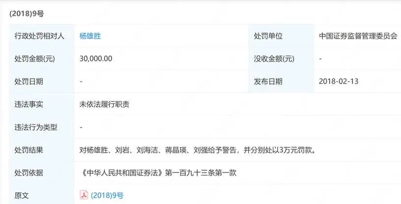 但是,2018年,楊雄勝曾因為在昆明機床大規模財務造假中沒有認真履行獨立董事及審計委員會主任委員的職責,被證監會下發處罰決定書,并被罰款3萬元。