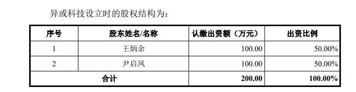 2004年5月,王炳余及其配偶尹啟鳳出資200萬元設立異或科技,兩人分別持股50%。這意味著,沁恒微的創始人為王炳余夫婦,而非目前的實際控制人王春華。