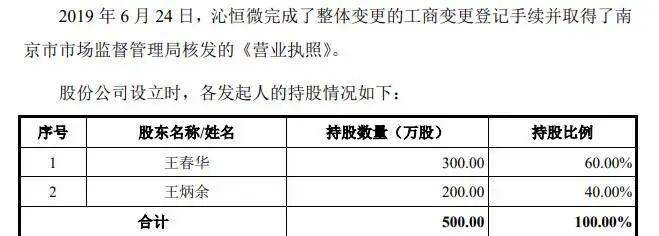 2019年,沁恒微股東變更為王春華、王炳余,兩人分別持股60%與40%。
