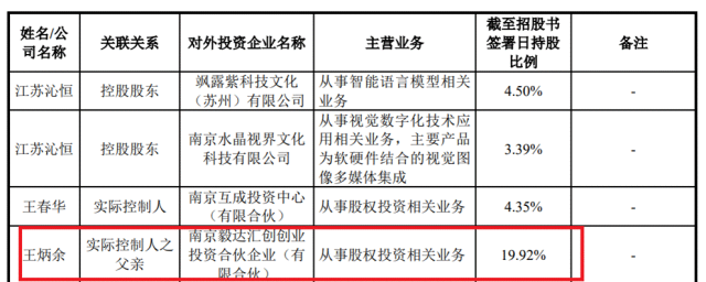 2024年5月13日之前,江蘇沁恒持有南京異或科技68.1817%的出資額,間接持有沁恒微21.56%股份。此外,2024年5月之前,王炳余持有江蘇沁恒40%股權,并通過后者間接持有沁恒微9.4%股份。