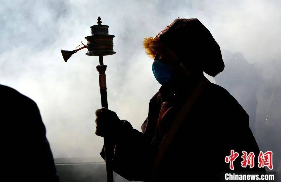 圖為手持轉經筒的信教民眾在拉薩市八廓街轉經祈福。中新社記者 李林 攝