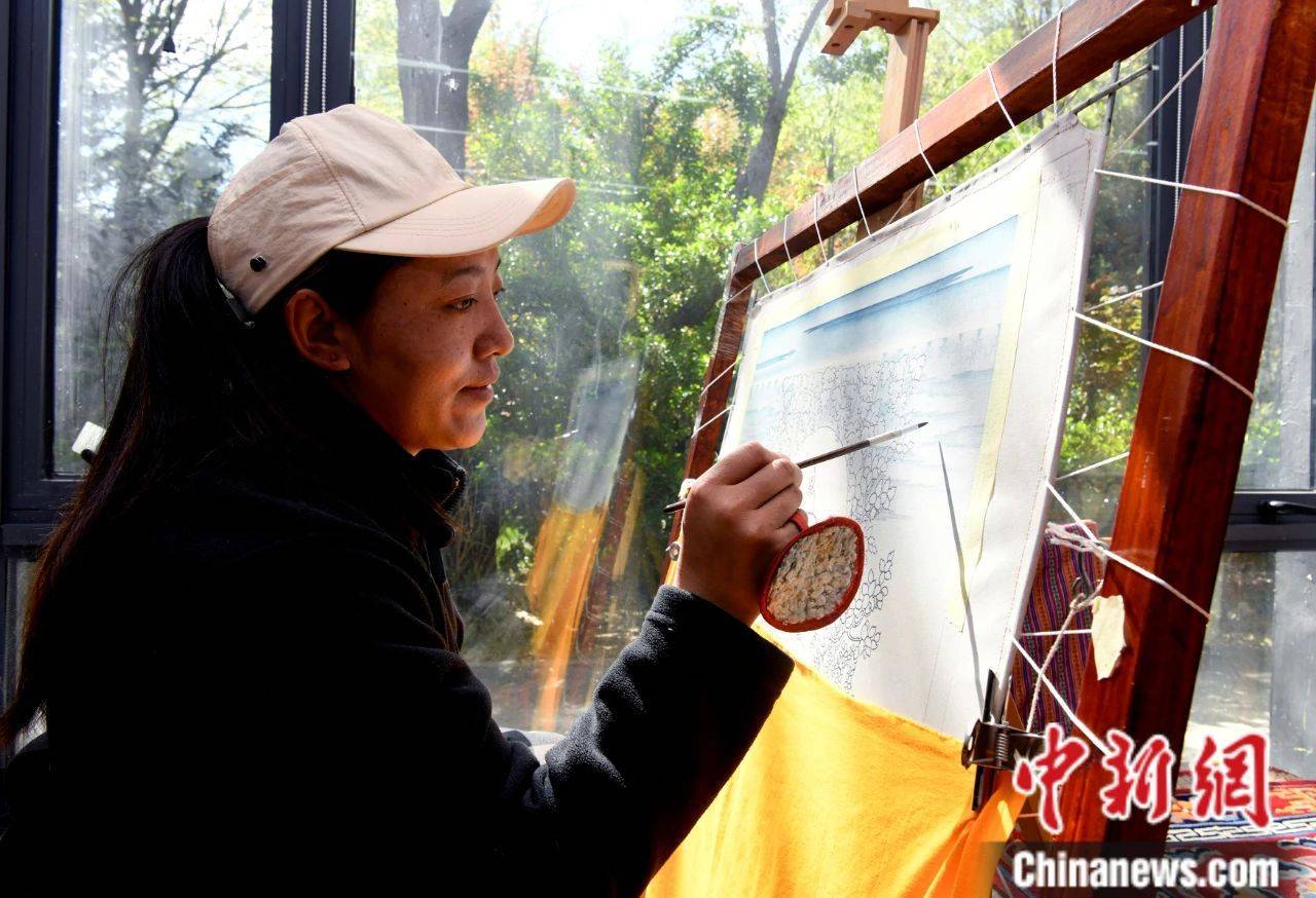 圖為西藏雪堆白技工學校學生德慶曲珍正在繪制唐卡。中新社記者 李林 攝