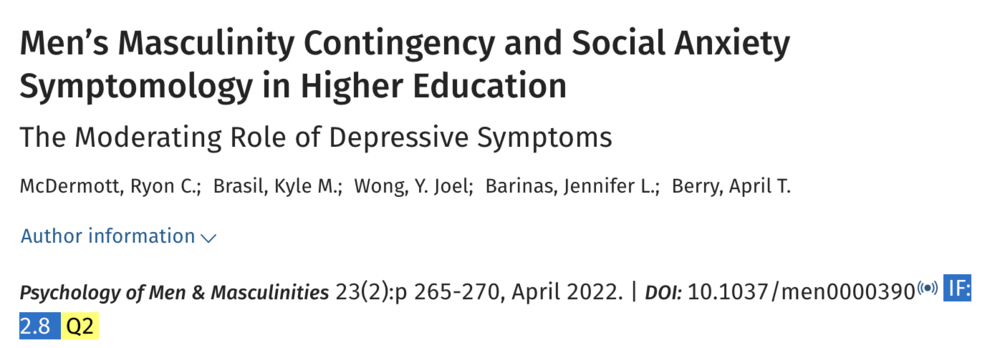 2022年以美國大學男生為樣本的《高等教育中男性男子氣概依賴性與社交焦慮癥狀研究》也指出,不男人沒價值的觀念與社交焦慮、抑郁癥呈正相關。