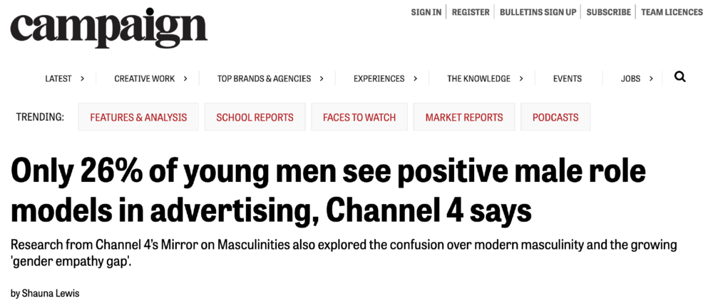在媒體和機構看來,形塑一個健康的男性榜樣的重要性,除了關乎商業,更有關未來。